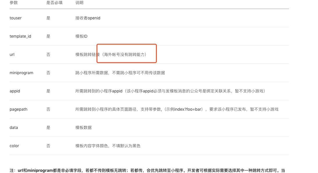 在我们海外公众号发送模版消息的时候,我们加入URL参数以便用户点击消息详情可以链接到官网。可是无论URL参数设什么值,送达的消息都不显示“详情”链接部分,像是腾讯特意屏蔽的感觉。可是,如果我们加上小程序链接,“详情”就出来了并且正确指向我们的小程序。所以,我们想询问,网页链接不行是不是一个Bug?