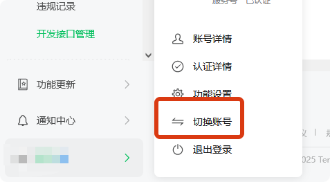 只要你的微信绑定了多个公众平台账号,点击其中一个账号后台头像,就会有切换账号选项。