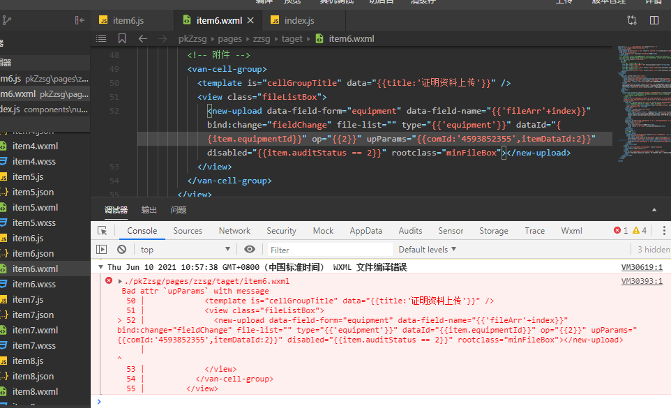 我在页面中调用这个new-upload自定义组件,里面有个参数upParams是个对象Object类型的