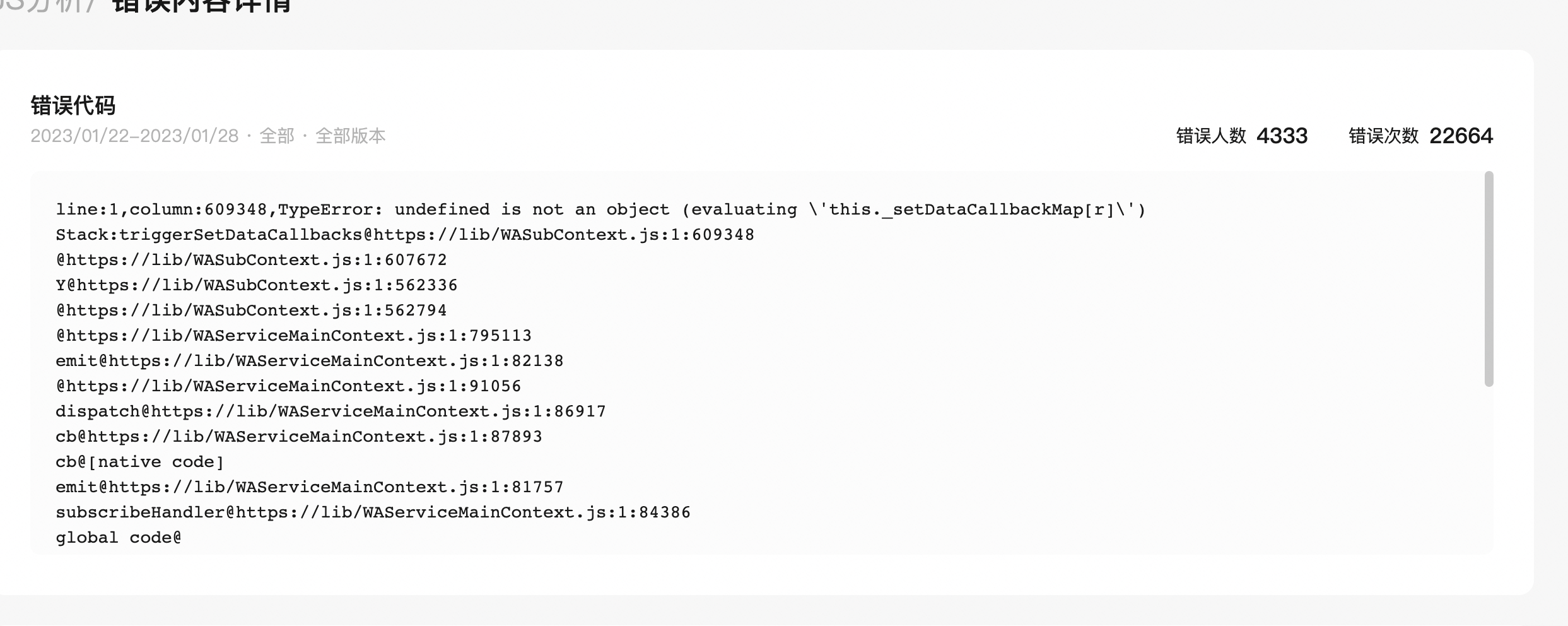 line:1,column:609348,TypeError: undefined is not an object (evaluating \'this._setDataCallbackMap[r]\') Stack:triggerSetDataCallbacks@https://lib/WASubContext.js:1:609348