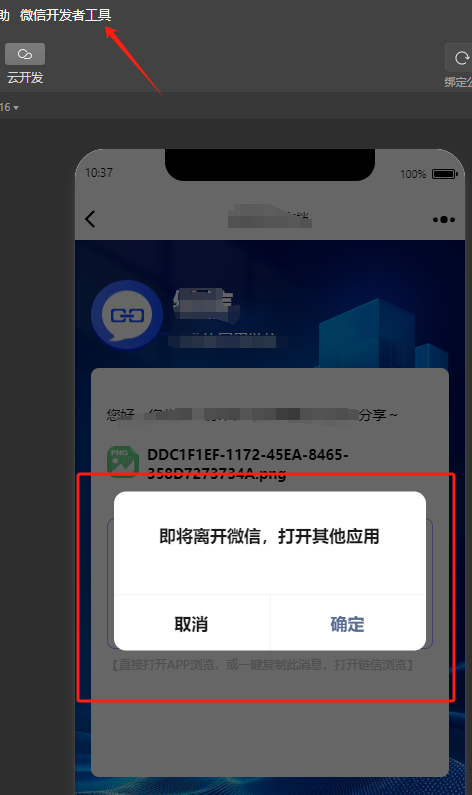 2、微信开发者工具上可以正常弹窗打开APP的提示弹窗