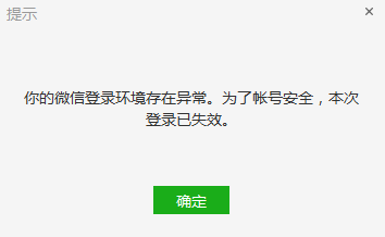 你好,请重新扫码登录即可,出现该提示一般是由于微信帐号被其它用户投诉导致(如:涉嫌频繁发送营销类广告骚扰信息等,请遵守微信使用规则,并规范个人行为,谢谢!)