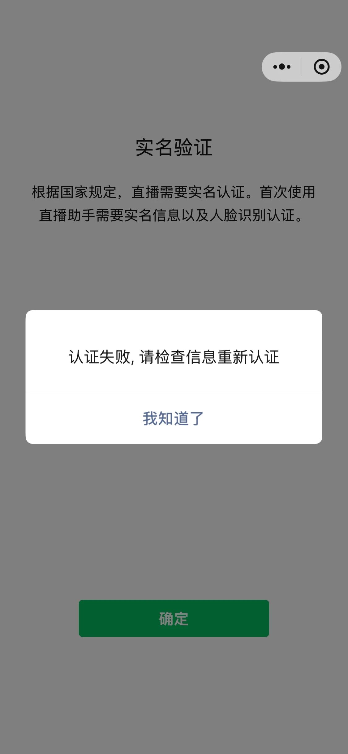 我是在小程序的直播控制台添加主播时,他需要扫你们的小程序直播认证,但是认证失败