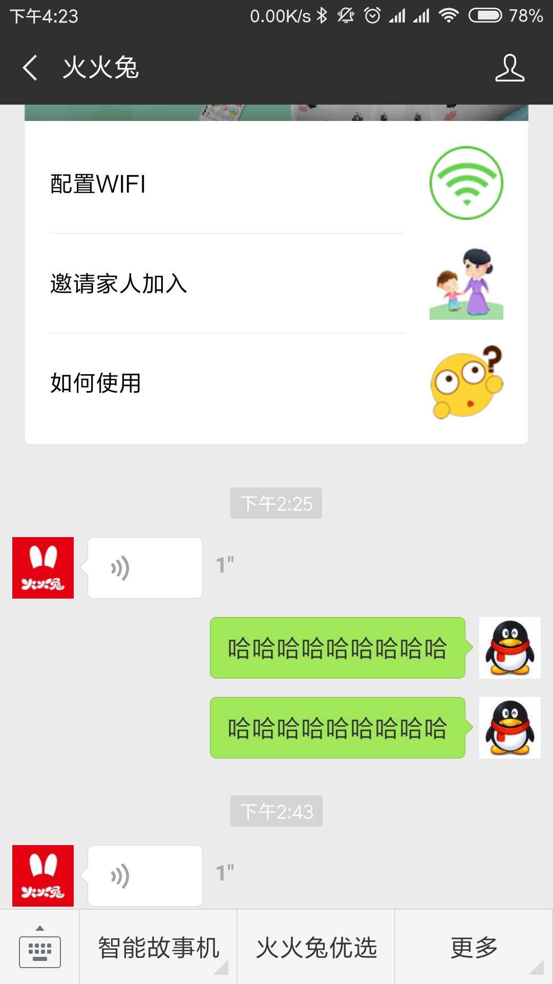 具体功能:实现用户与硬件的语音消息互动。用户可直接通过微信服务号的聊天框发送语音,语音最终到达硬件播放;而硬件录音后,也可以推送到对应用户的微信服务号,如下图。
