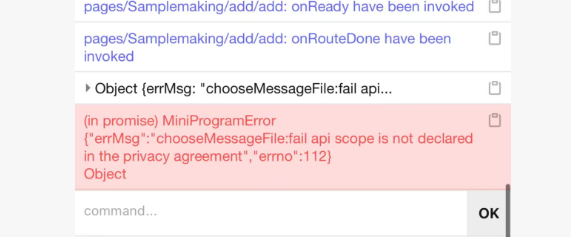 在体验版下wx.chooseMessageFile({})提示112。请问有什么办法可以过滤掉吗。