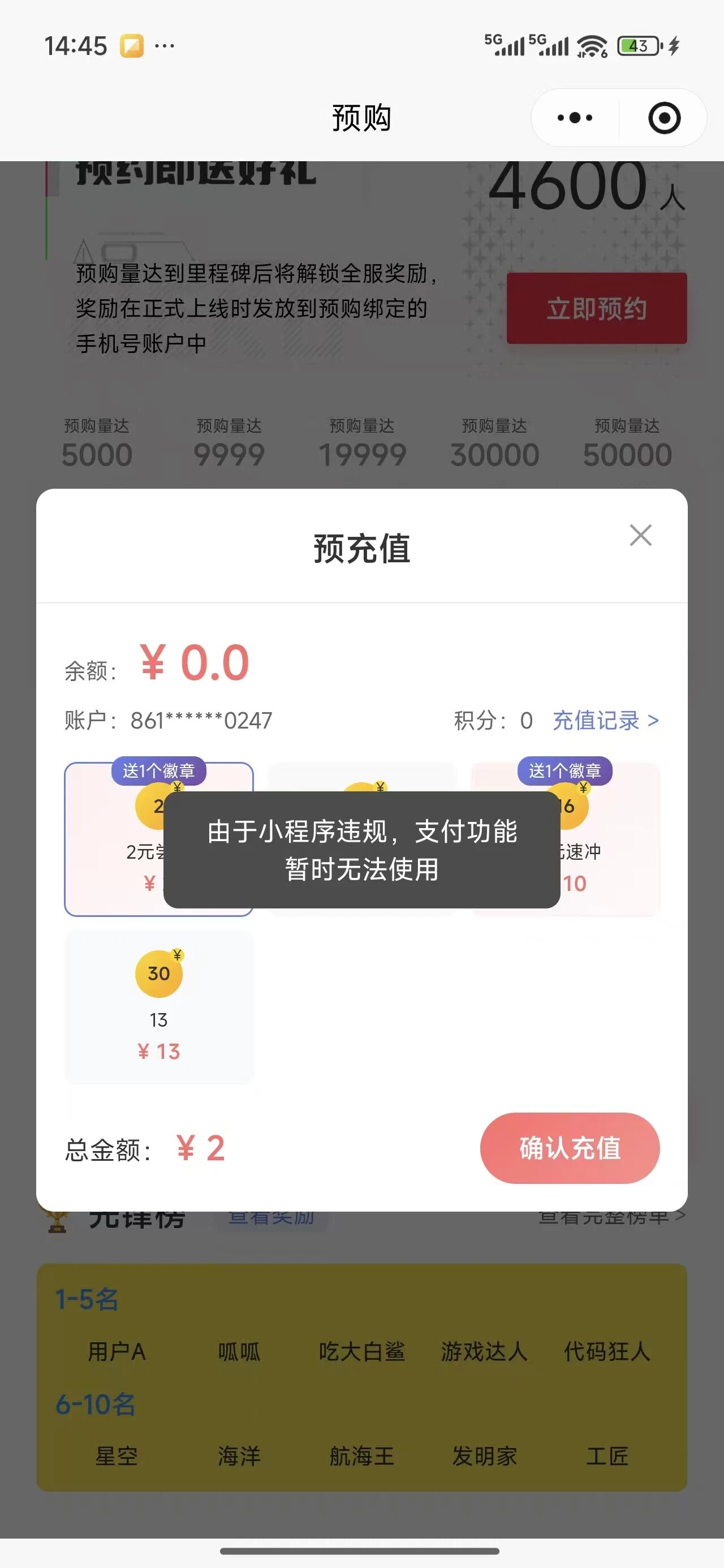 你好,经核实,该小程序需完成订单管理接入,请登陆微信公众平台 查看相关站内信,按照指引前往「微信公众平台>支付与交易>订单管理>订单信息录入」进行接入,感谢反馈。