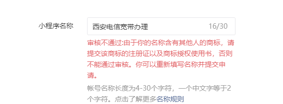 修改小程序名称,提示存在商标问题,上传商标后,提示商标需要持有者授权,于是把商标和持有者授权文件都发过去了,结果还是审核不通过,怎么办啊