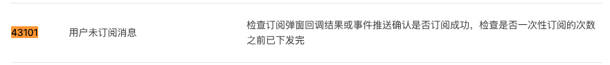 昨天用相同的用户openid发送成功了的,但是今天早上再尝试就报错,已经确定用户是开启了接收该订阅消息的。而且今早还用另外的用户也测试了,一次返回43101,一次成功。这是否存在其他的推送判断??