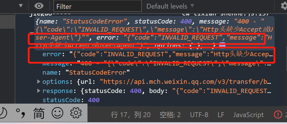 error: "{"code":"INVALID_REQUEST","message":"Http头缺少Accept或User-Agent"}",