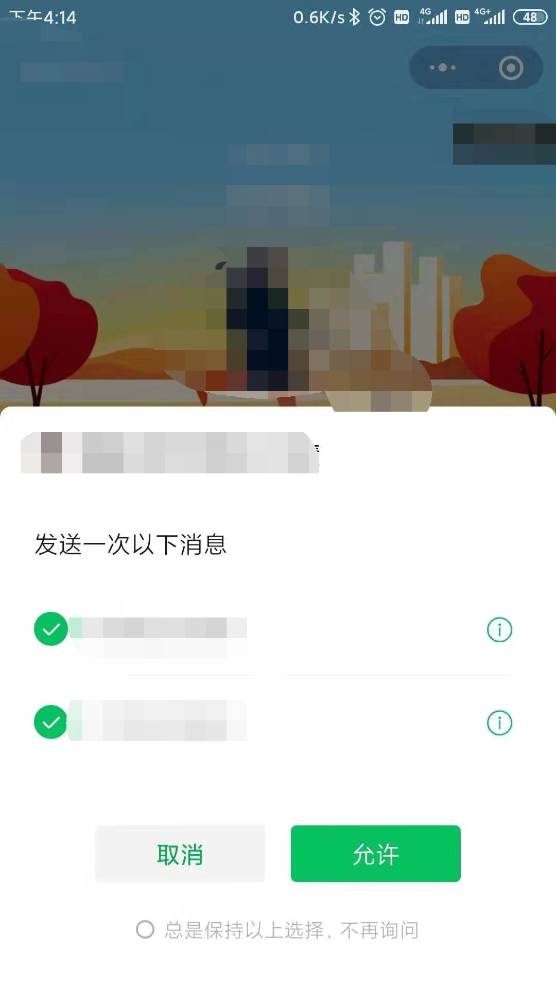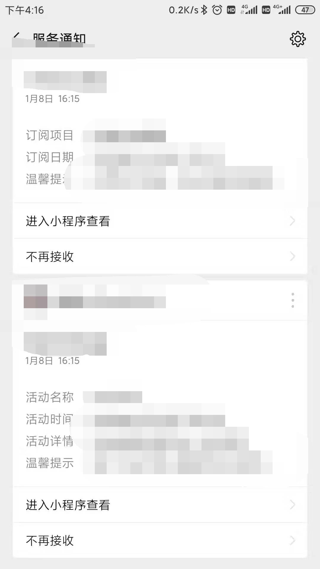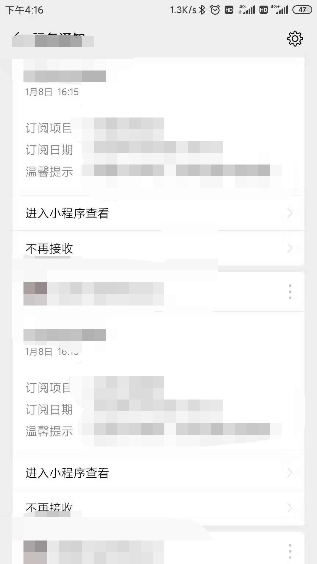 手动在后台设置的地方把订阅开关关掉,此时之前所有的点击都失效了,然后重新订阅一次两条不同的消息,应该收到两条但是收到3条消息