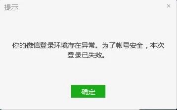 你好,提示“登录环境异常,本次登录失效,请重新登录”的问题,重新扫码登录即可,出现该提示一般是由于微信帐号被其它用户投诉导致(如:涉嫌频繁发送营销类广告骚扰信息等,请遵守微信使用规则,并规范个人行为,谢谢!