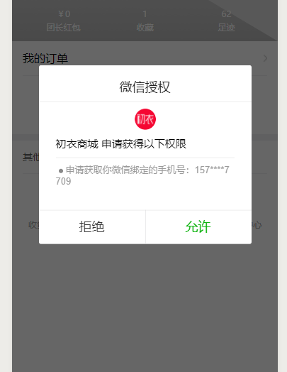 //授权绑定微信号的手机号码