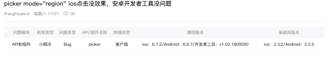 安卓和工具上没毛病,以前用的时候也是没毛病,再次使用用到picker的region调用省份的时候,发现ios点击没效果。