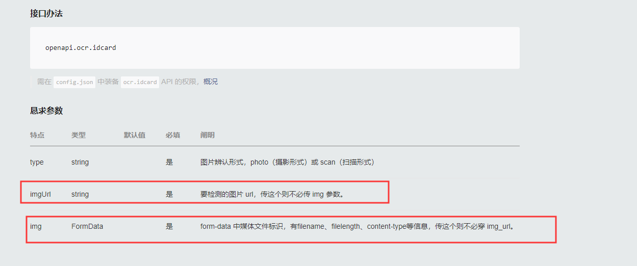 http://www.f6m88vra.com/debug/wxadoc/dev/api-backend/open-api/ocr/ocr.idcard.html 就看到的这个文档来说,需要权限,相关权限有没有配置申请?
