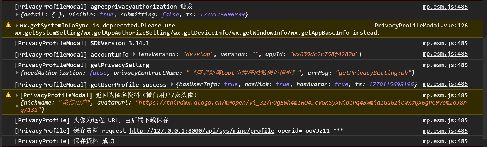 - 返回内容为匿名资料(微信用户 + 灰头像)