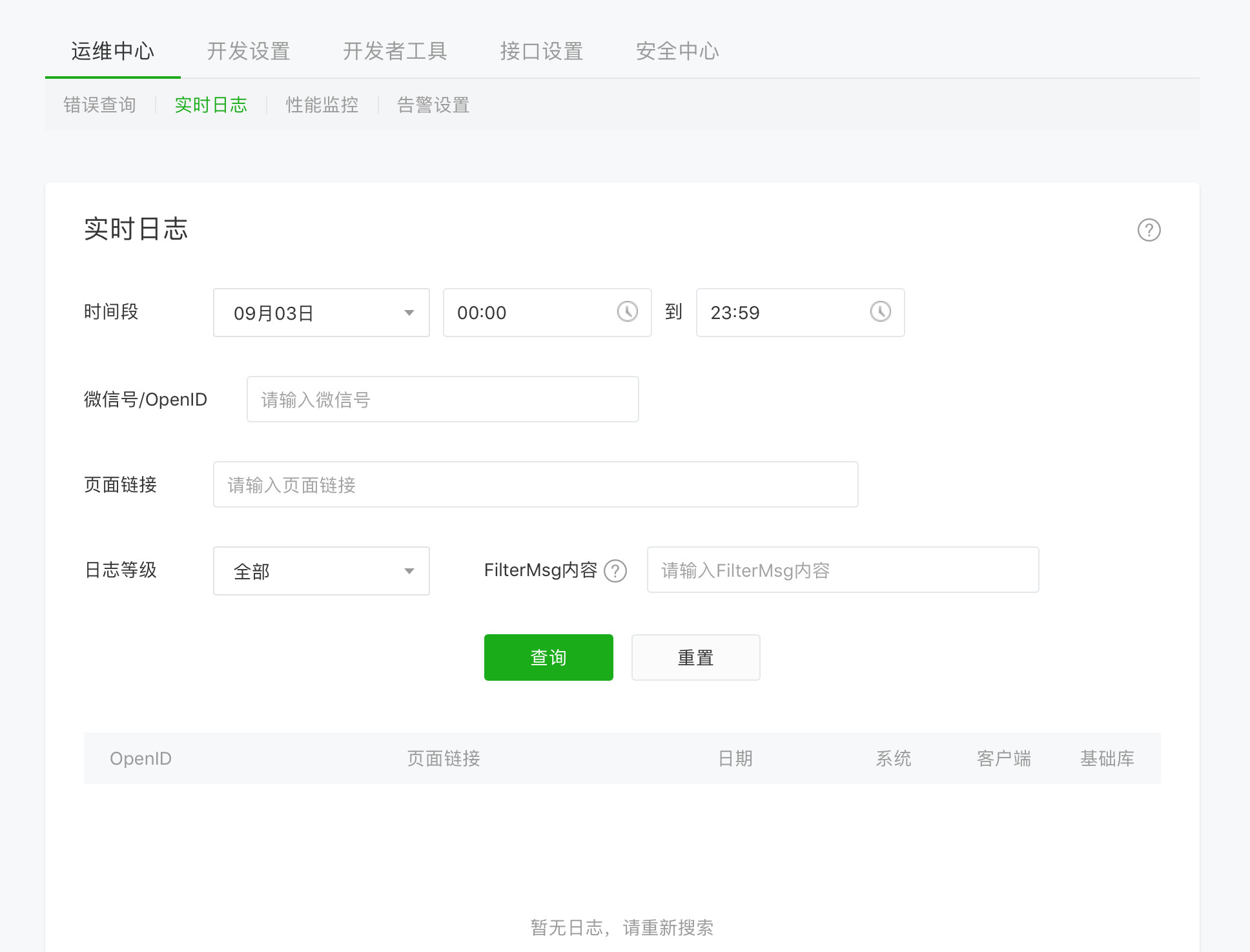 按照文档接入实时日志,体验版中写入了日志,在后台查看,没有任何日志,请问是怎么回事?