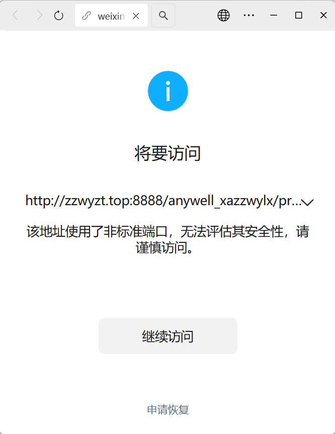 域名备案是正常的,浏览器访问正常,我是网站开发者,微信访问网站出现“无法评估该网页的安全性,请谨慎访问”,经检查网页里没有不安全的内容,腾讯安全-网址安全中心检测也没有发现风险,之前申诉过一次恢复正常访问一段时候后,微信打开网页又出现同样提示,劳烦核实后帮忙解除拦截,感谢。