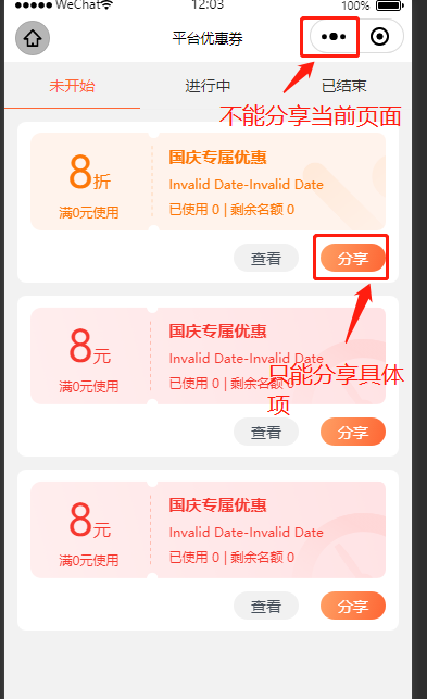 页面是个列表,每一项可以单独触发分享,但是不能分享页面,设置onShareAppMessage后,会导致用户可以分享当前页面
