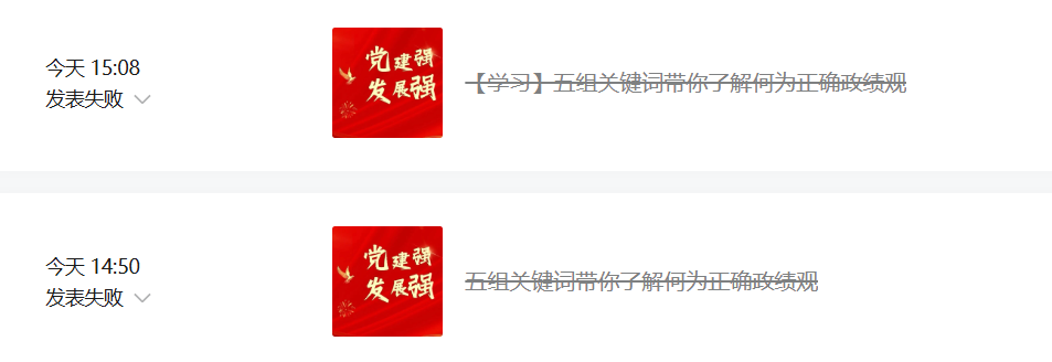 转发来自“共产党员”等官媒的学习文章(内容为官媒制作的一张图片“五组关键词带你了解何为正确政绩观”),图片本身带有官媒名称且文末特意标注了来源,却多次提示文章内容涉嫌违规无法发送?