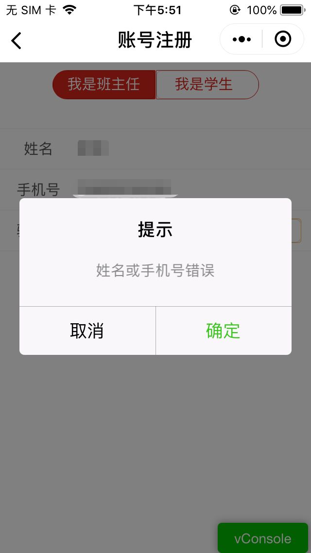 这个注册的姓名与手机号,必须是我这边后台系统中已有的手机号匹配才能注册成功,你可以提供一个手机号给我,然后我录入我们系统供测试用。