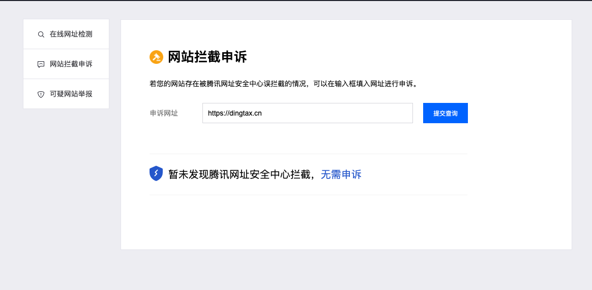 您好,我们公司的链接遇到了「如需浏览,请长按网址后使用浏览器访问」的提示,二级域名下都出现了这个问题,如其中的一个链接是: https://app.dingtax.cn