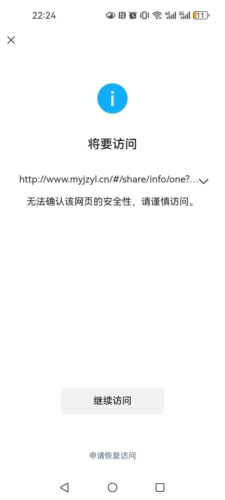 在微信里面访问我们网站:www.myjzyl.cn 一直提示”无法确认该网页的安全性,请谨慎访问“,需要二次确认才能打开页面,麻烦帮忙解决一下,相关信息如下: