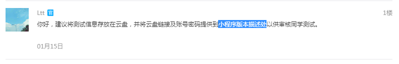 已经按要求提交测试账号密码到小程序版本描述处,苦等5天,急着发布,这个回复。。。明明已经提供了,为什么还要提供?