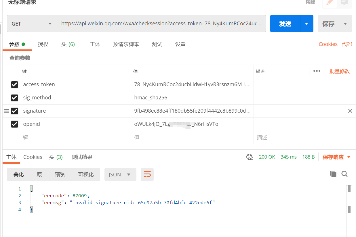 因为业务需求,需要对校验服务器所保存的登录态 session_key 是否合法。所以需要调用checkSessionKey,但是一直检验失败