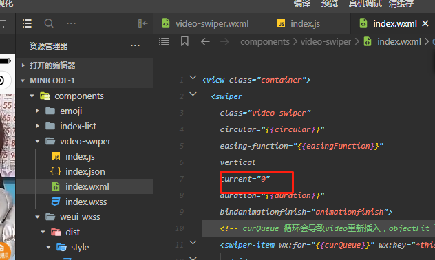 第一个问题 为什么一上来就从第一个开始播放 尝试改了swiper初始化的索引 又改了播放视频方法传的参数 _this.playCurrent(0) 发现可以从第一个视频可以开始播放 问题是滑动到第二个视频的时候就不播放了 肯定是打乱了这里面的算法