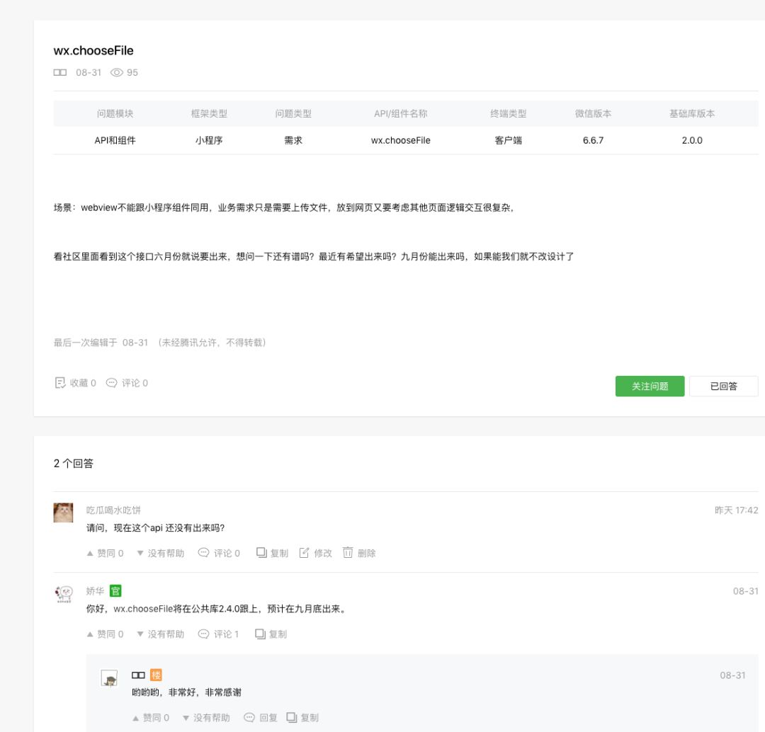 chooseFile 这个api 之前说9月底出, 现在都11月中旬了,请问现在还没有上线吗?。