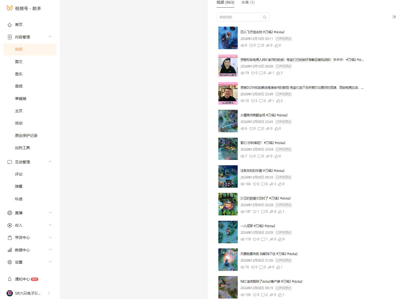 我的视频号目前在没有扣分、违规的情况下,在12月7日以后 发的视频全部不被推荐了 ,以往出现类似情况 检测帐号是不予推荐1天 或者减少推荐1天 现在帐号检测正常却没有任何推荐,目前只有基础的播放量,以前是发的视频大多会有系统推荐。帮助与反馈的客服不清楚原因 只回复了检测正常 但实际是不正常的 特别来反馈一下BUG 我刚看到社区里很多人提出类似问题 大家都没有得到解决。图里可以看到12月7日9点以前是正常的 持续半年所有的视频都是5K-2W播放量 后台查看数据 推荐量正常 完播率都很高 从12月7日20点以后的视频开始