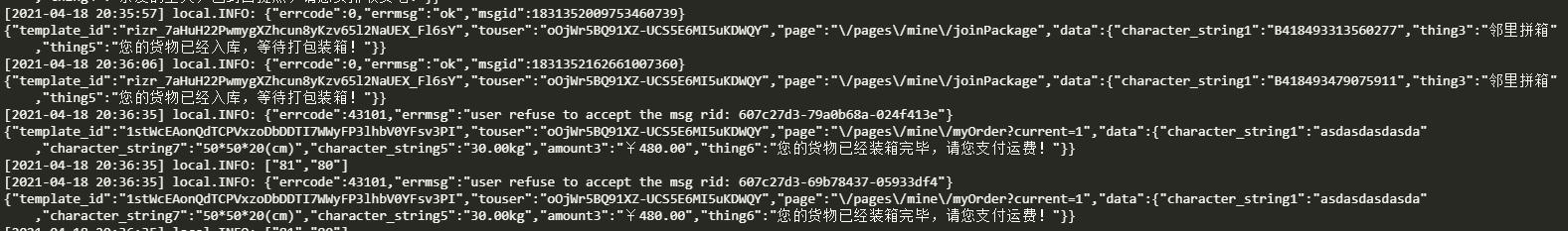 wx.requestSubscribeMessage点击允许多个一次订阅消息,send第一个成功通知到了,后面的报错43101?
