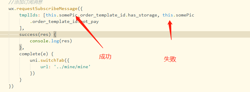 这是wx.requestSubscribeMessage同一次订阅两个中,用了其中一个就把另外一个的send用掉?所以报错43101?
