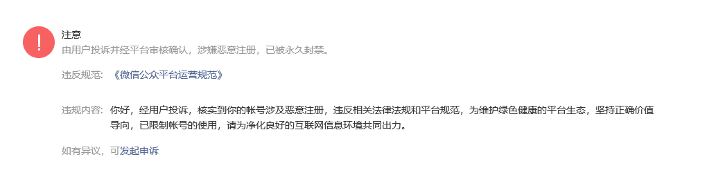今天想自己注册一个公众号,结果发现名下有一个公众号,而且被封禁了,自己根本不知道这事,这要咋处理啊?