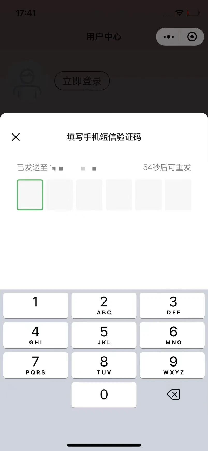 期待效果:小程序内弹出发送验证码界面