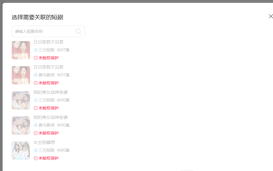 你好,剧目需申请版权保护才可关联发表。可通过“修改剧目基本信息”补开版权保护,详见:https://developers.weixin.qq.com/miniprogram/dev/server/API/minidrama/auditdrama/api_submitmodifydramabasicinforeq.html