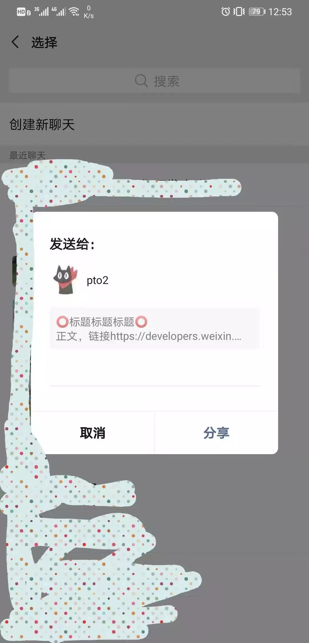 3、分享结果里,链接可以被识别并标蓝,但是点击没有任何反应(无论分享目标的客户端是安卓还IOS)