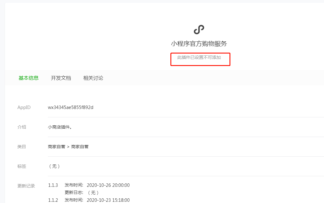 你好,小程序官方购物服务插件申请可以直接删除,请参考以下文档,检查是否符合资质: