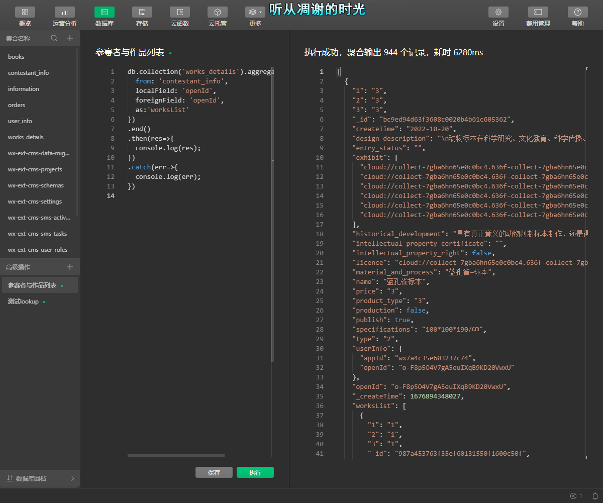 场景:在使用云函数lookup 进行两表连接的时候,提示数据库异常
