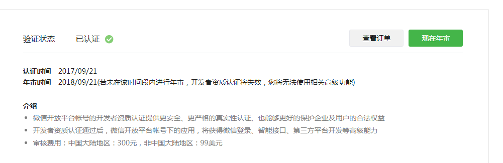 微信开放平台帐号不需要年审https://developers.weixin.qq.com/community/develop/doc/000c04e3fb03d8c8ae390909251809?_at=1603249874772