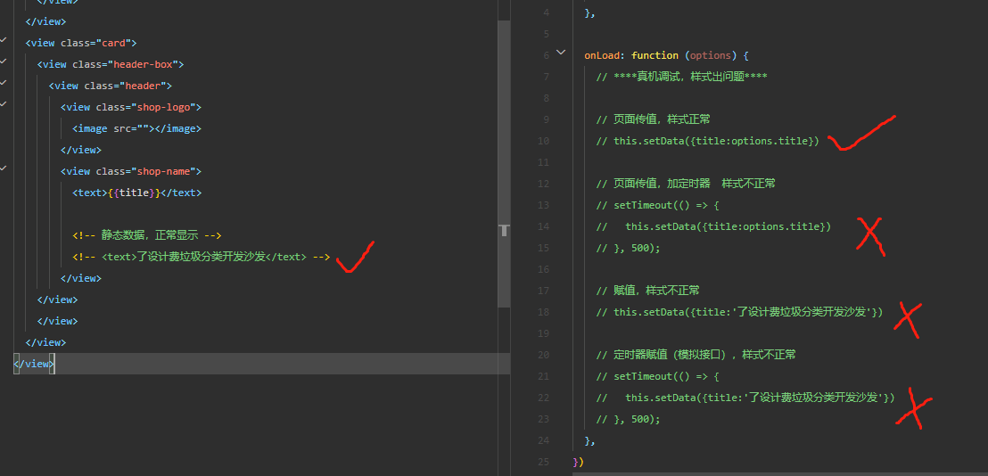 尝试了以下几种方法:真机调试模式下只有静态数据,或页面传值样式才正常显示(开发者工具尝试了各种机型显示的样式全部都正常)