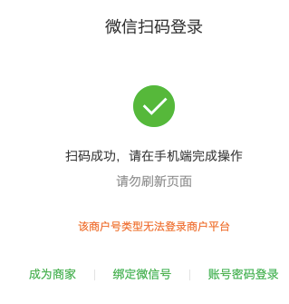 商户号申请成功,扫码登录却提示这个,无法继续操作,请官方人员给予解答