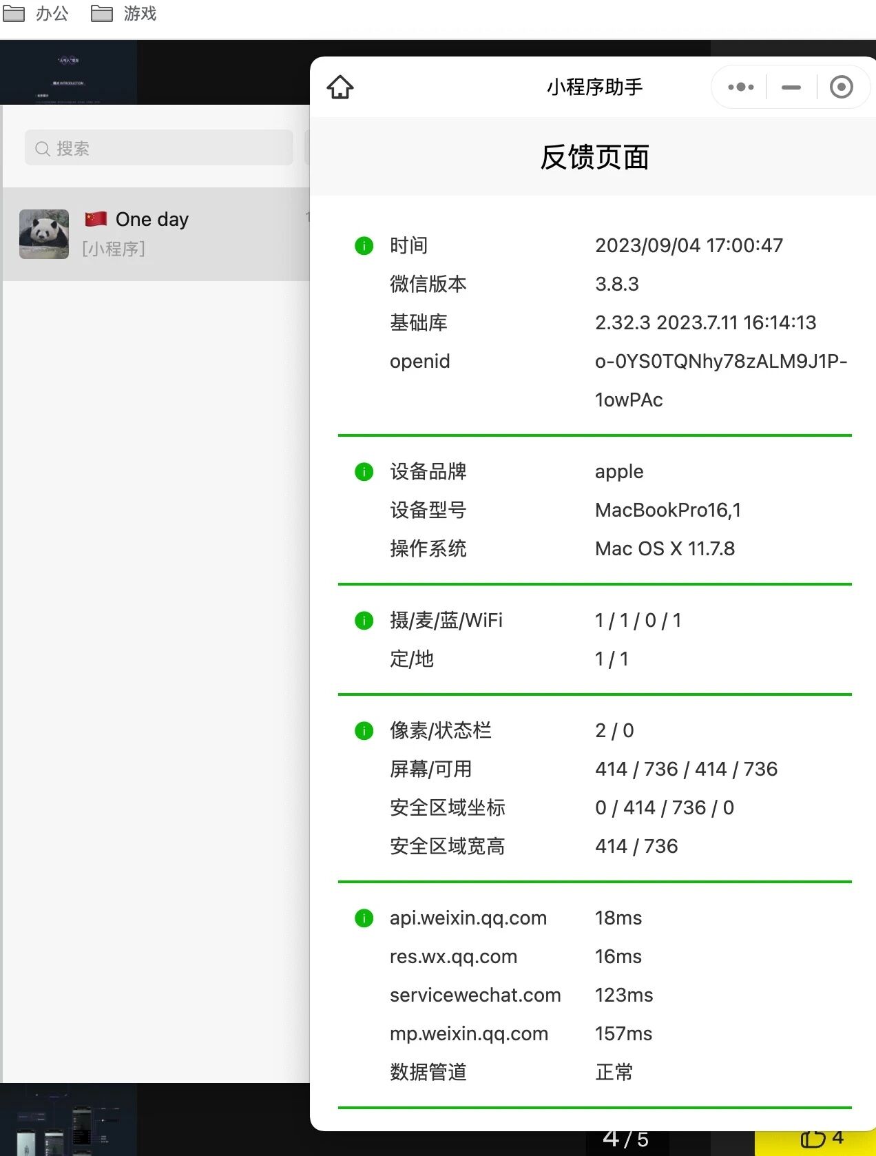 用户在mac电脑上打开最近使用的小程序启动页白屏(必现),打开聊天记录中分享的小程序可正常展示