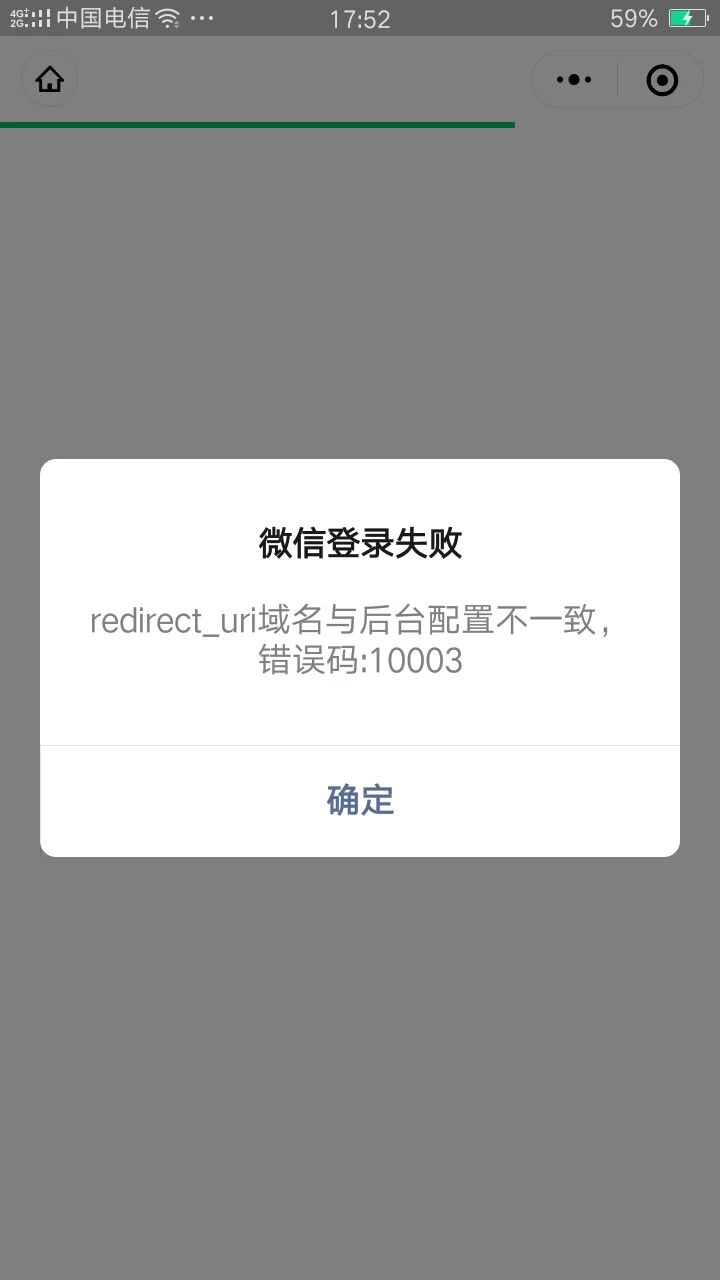 微信小程序,报 redirect_uri 域名与后配置不一致,错误代码:10003?