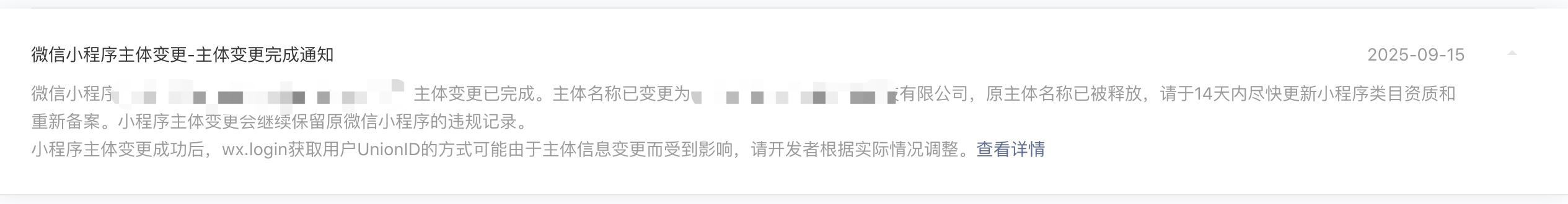 你好,小程序原认证主体工商局已经注销,导致小程序停用。但现已重新变更到新公司,并且已经重新备案到新公司。但还是显示注销中,微信里还是搜不到小程序