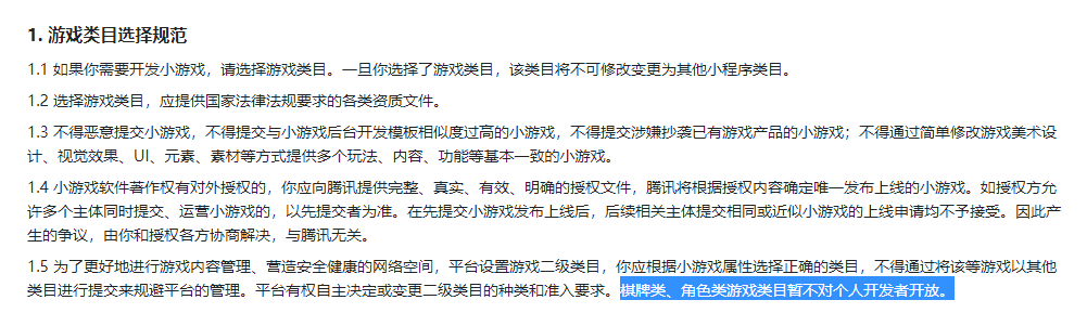 https://developers.weixin.qq.com/minigame/product/#_1-%E6%B8%B8%E6%88%8F%E7%B1%BB%E7%9B%AE%E9%80%89%E6%8B%A9%E8%A7%84%E8%8C%83