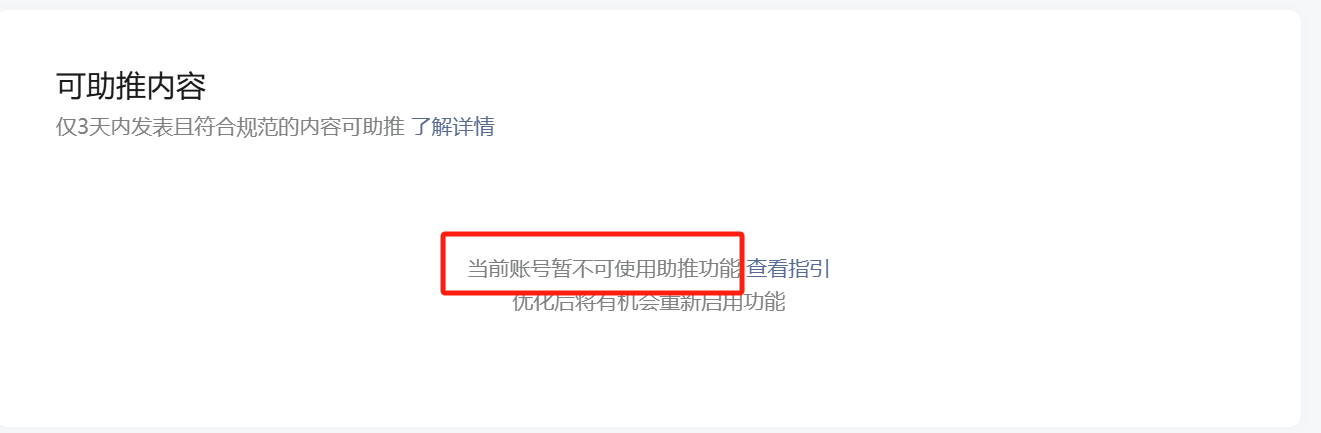 如果按照助推指引,你内容不算优质,所以后续等内容符合规定后才可以再次使用。