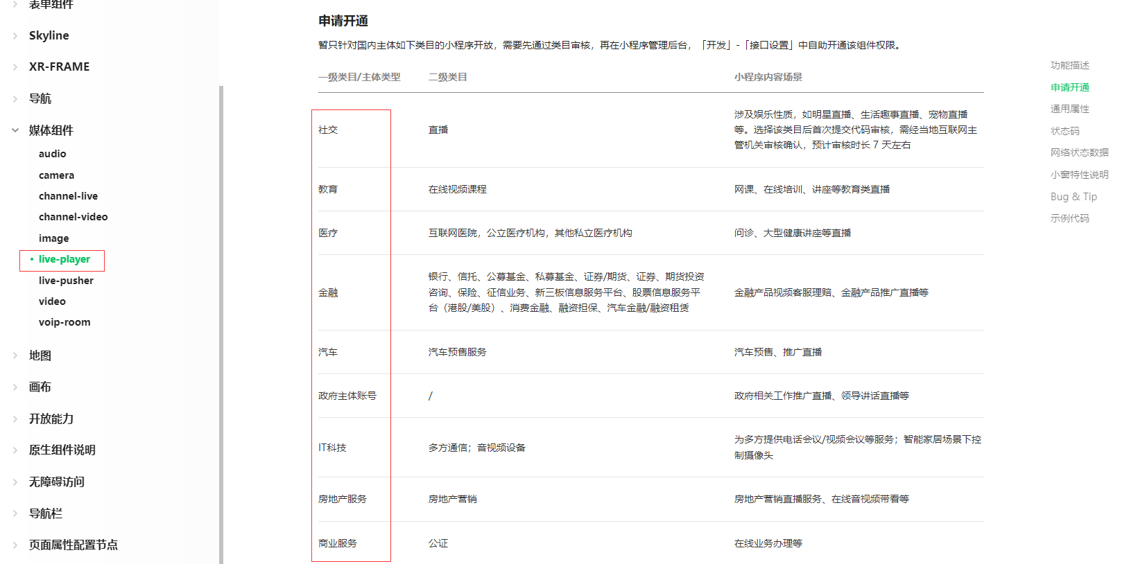 你的是个人主体小程序吧?目前live-player组件文档里面的类目是非个人主体小程序才有的。