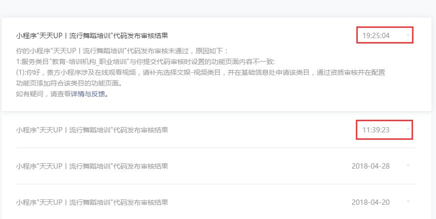 1:服务类目"教育-培训机构_职业培训"与你提交代码审核时设置的功能页面内容不一致: