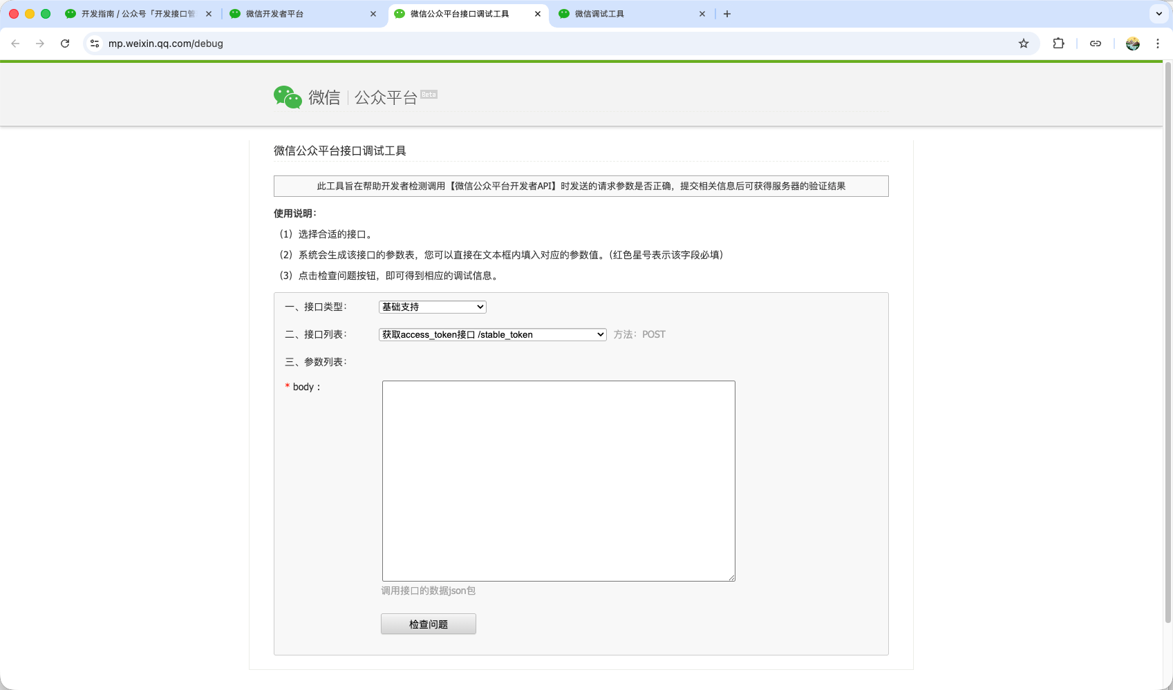 或者可以点击这个链接直达:https://mp.weixin.qq.com/debug